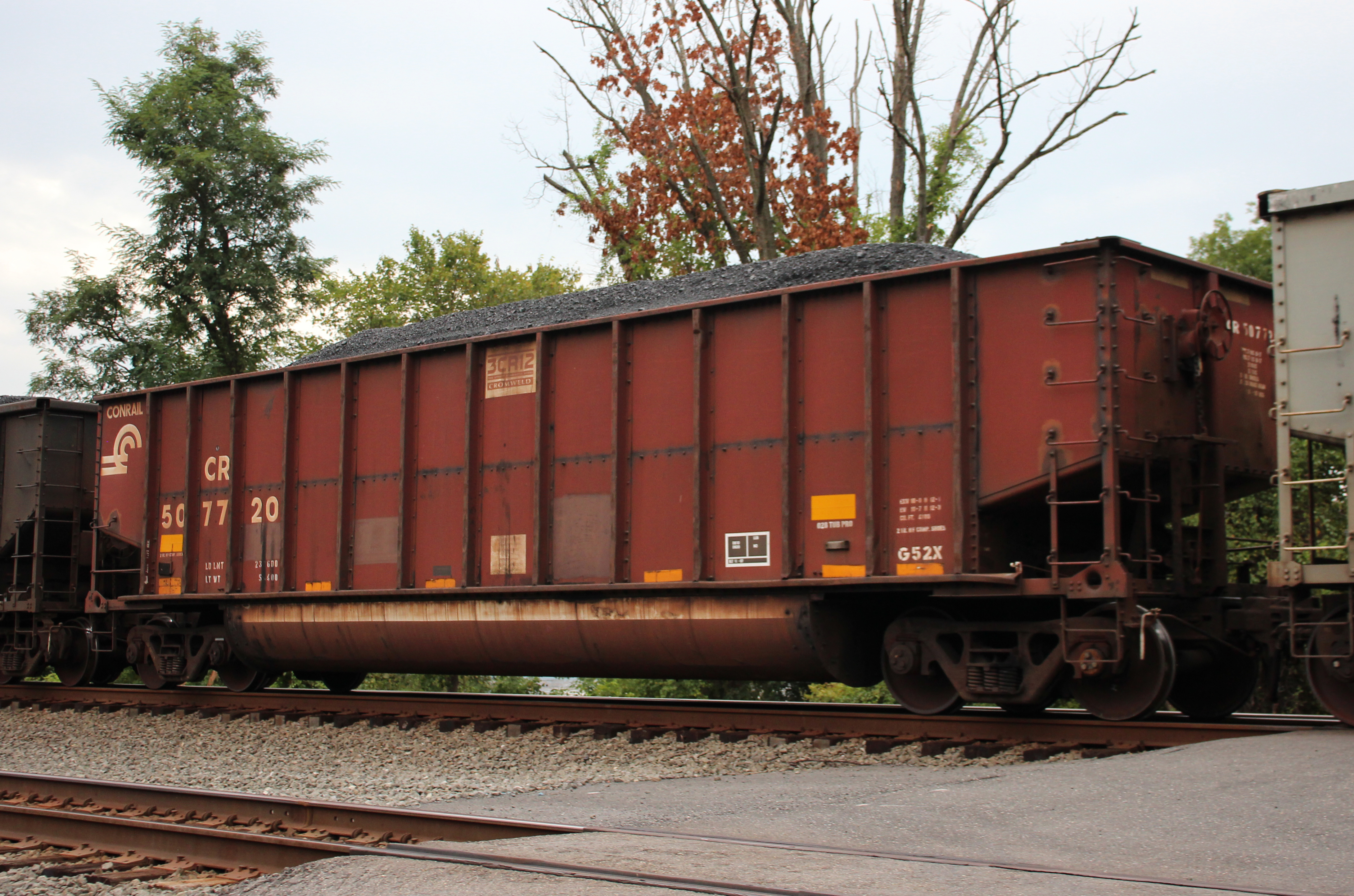 CR 507720 is seen in the consist of NS 596 at Cove, PA on 9/6/25. Car was built 10-97 (painted 10-6-97) by HCS.