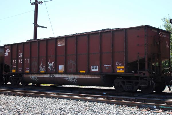 CR 507856 is seen in the consist of NS 593 at Rockville, PA on 5/15/21. Car was built 11-97 (painted 11-7-97) by HCS.