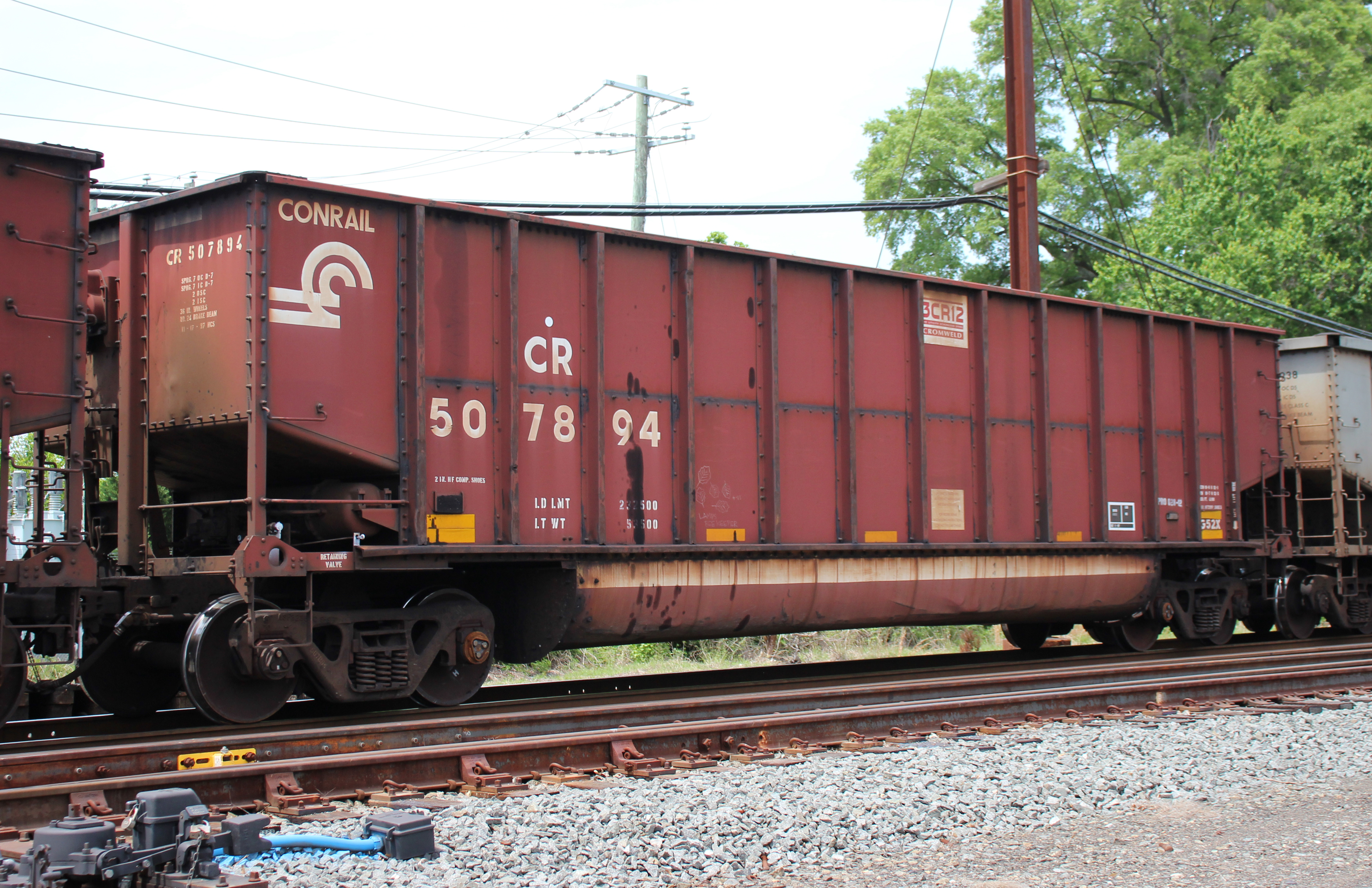 CR 507894 is seen in the consist of NS Y97 at Perryville, MD on 5/11/23. Car was built 11-97 (painted 11-17-97) by HCS.