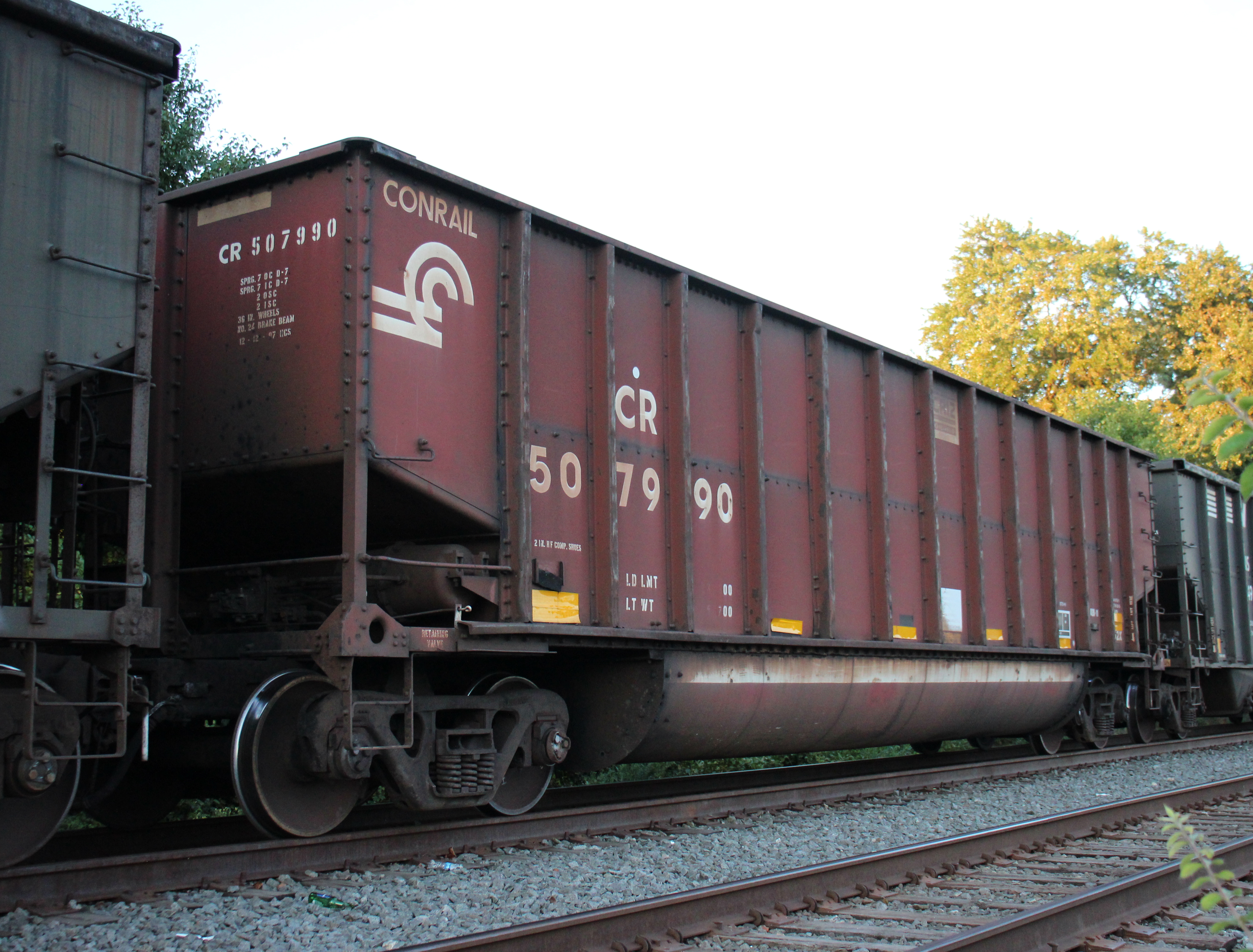 CR 507990 is seen in the consist of NS 578 at New Castle, DE on 8/27/25. Car was built 12-97 (painted 12-12-97) by HCS.