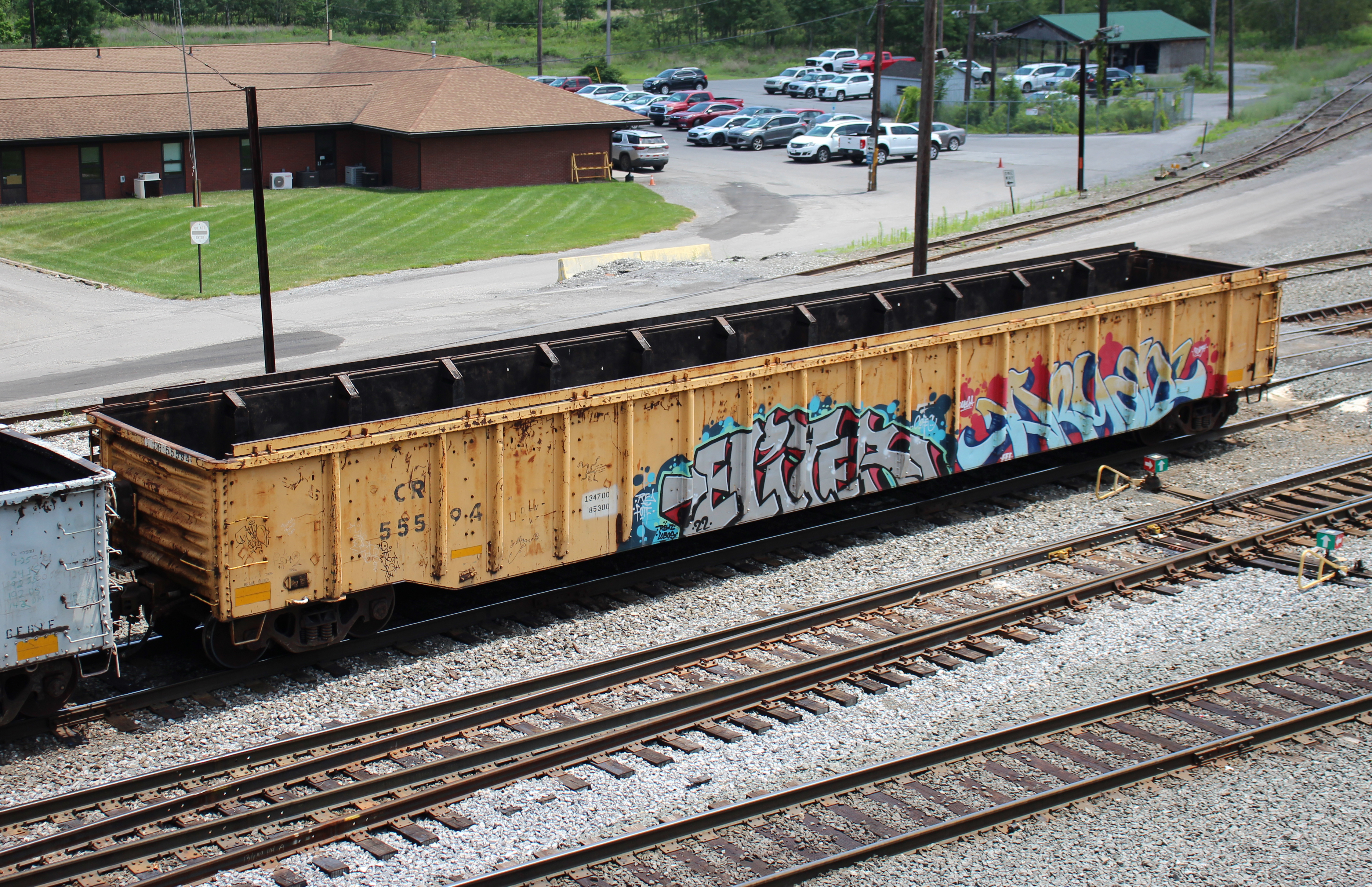 CR 55594 is seen in the consist of NS 36A at Altoona, PA on 6/29/25. Car is ex PC 598690, built 6-72 by Fruehauf and was painted CRBL 3-89.
