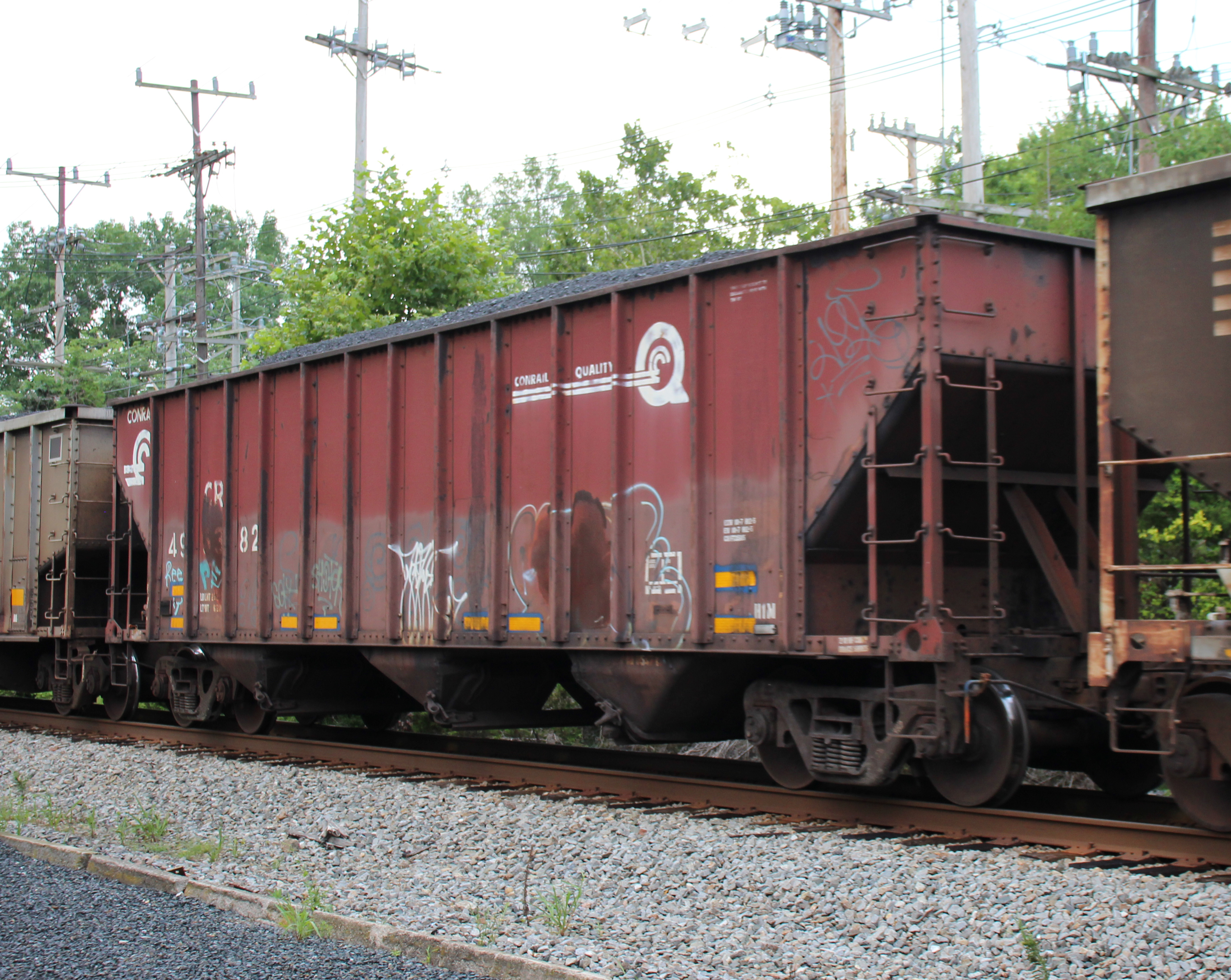 CR 495382 is seen in the consist of NS Y90-15 running as CSX Z463-20 at Newark, DE. Car was built 9-93 (painted 9-20-93) by HCS.