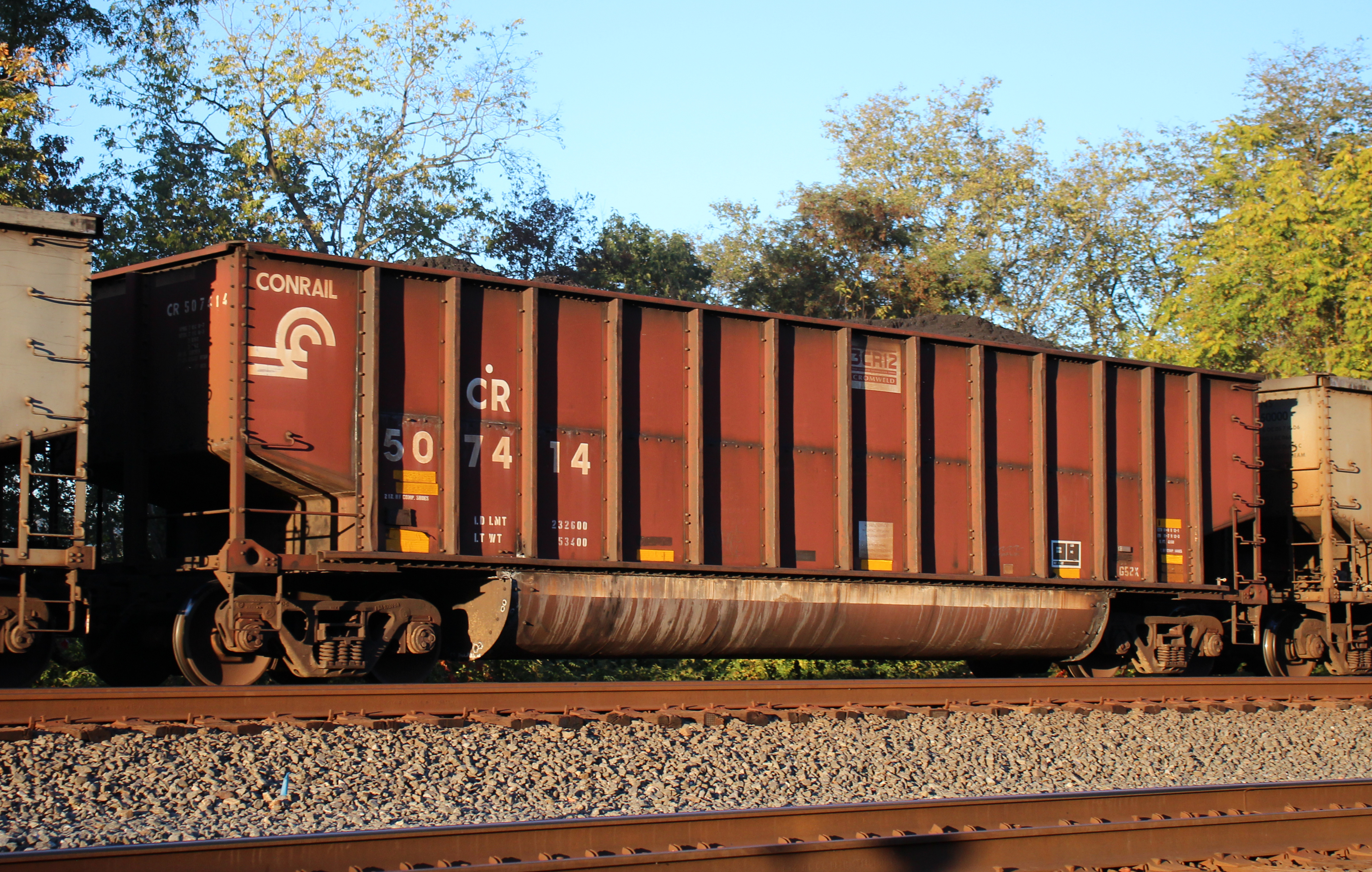 CR 507414 is seen in the consist of WB NS 632 at Cove, PA on 10/18/25. Car was built 7-97 (painted 7-14-97) by HCS.