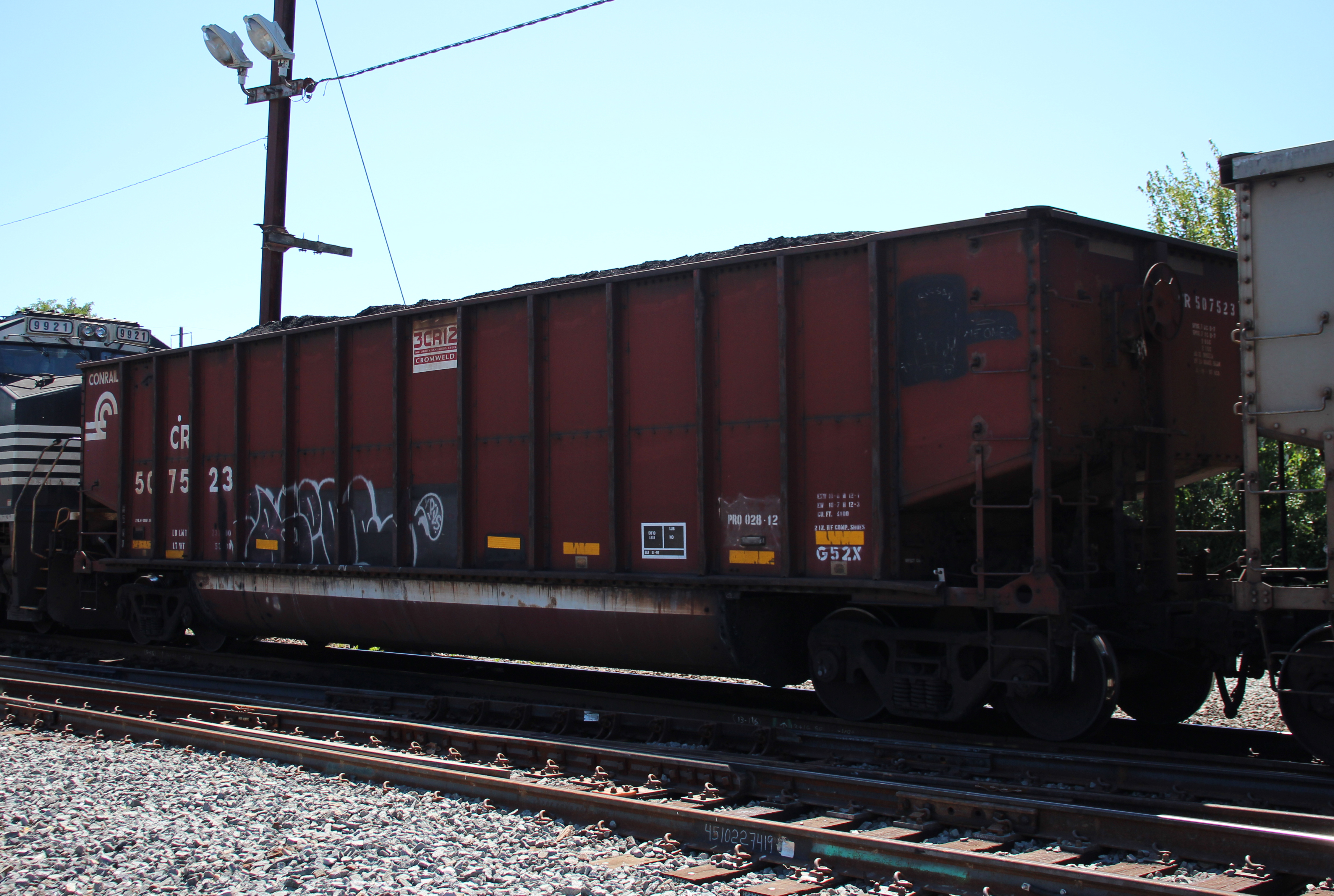 CR 507523 is seen in the consist of NS 650 at Perryville, MD on 8/30/25. Car was built 8-97 (painted 8-19-97) by HCS.