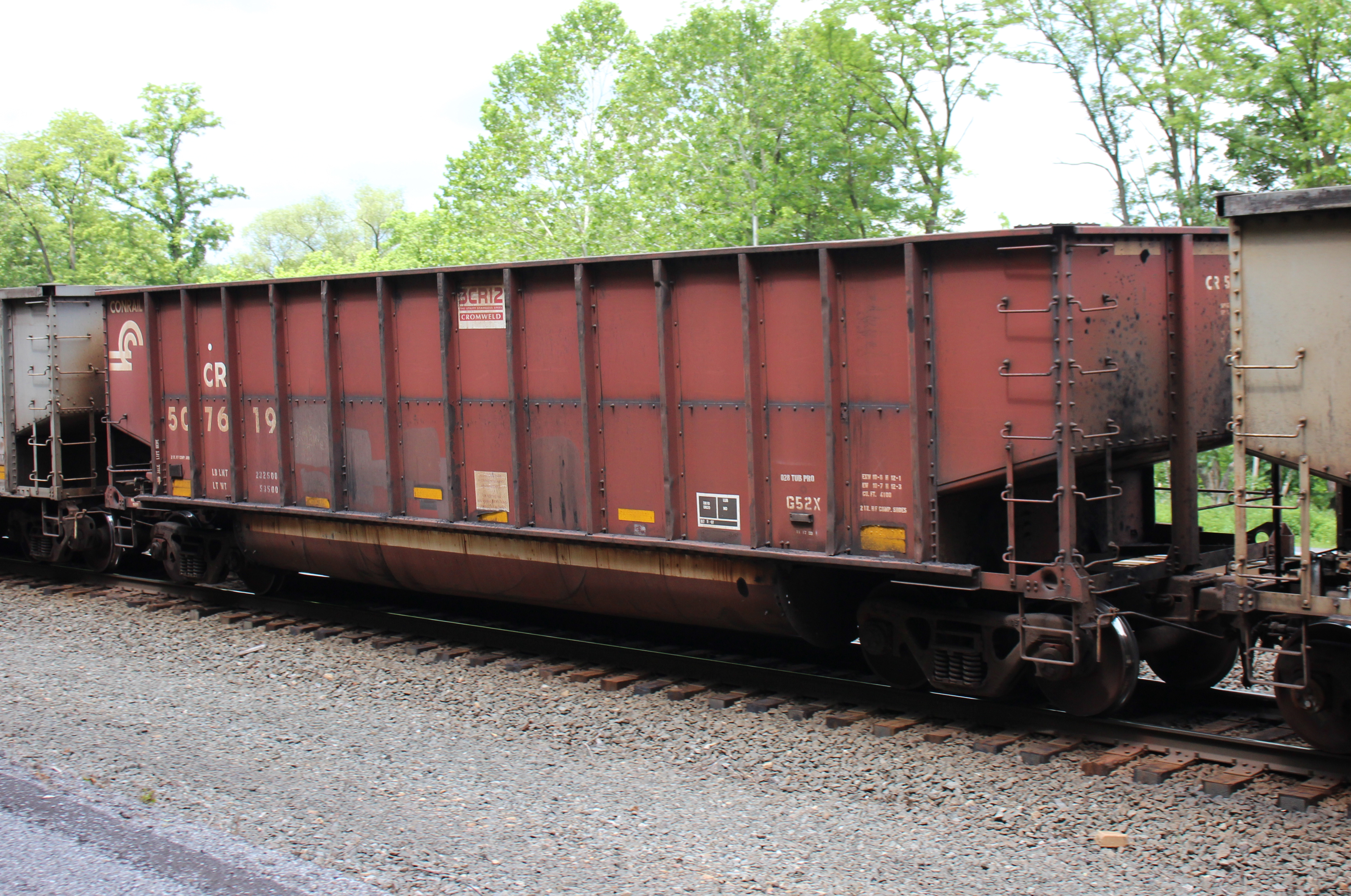 CR 507619 is seen in the consist of NS 595 at Tyrone, PA on 6/25/23. Car was built 9-97 (painted 9-11-97) by HCS.