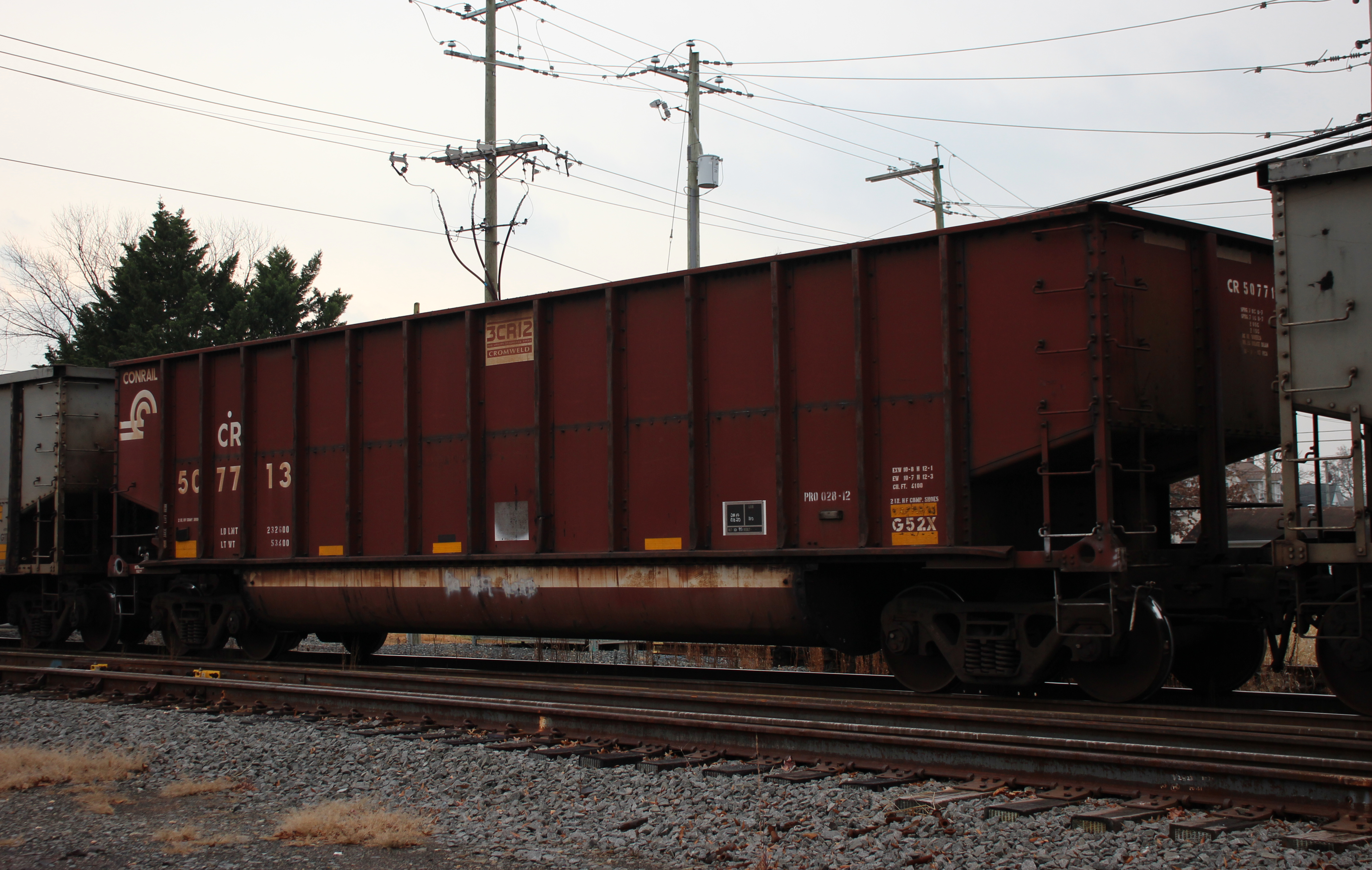 CR 507713 is seen in the consist of NS Y97 at Perryville, MD on 12/6/25. Car was built 10-97 (painted 10-3-97) by HCS.