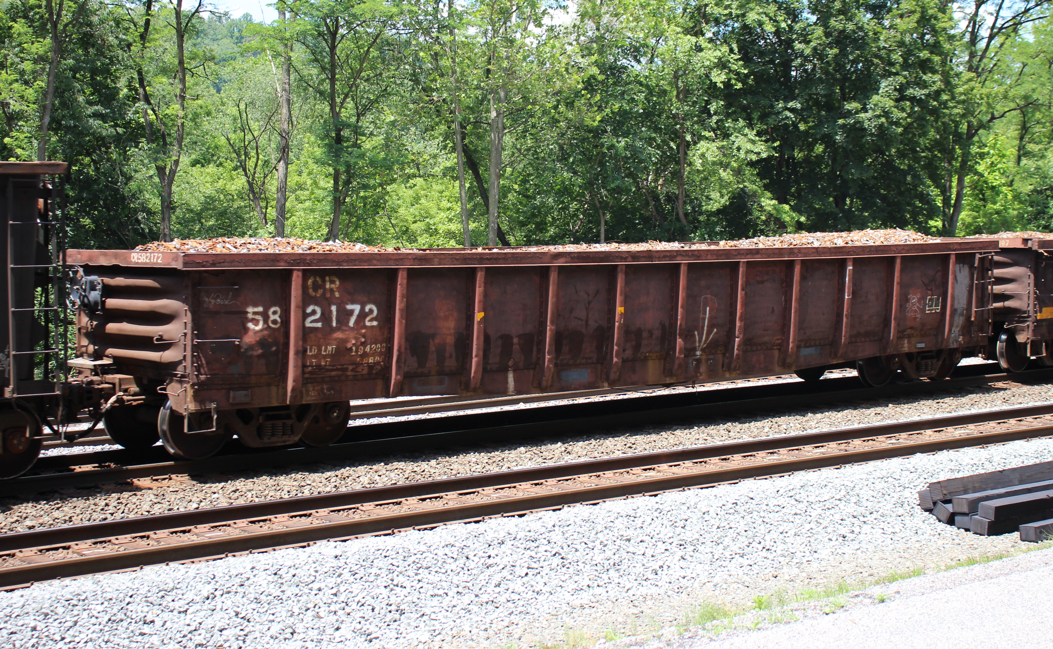 CR 582172 is seen in the consist of NS 39G at Tyrone, PA on 6/29/25. Car was built 6-80 by CR.