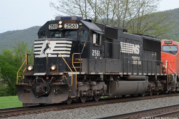 NS 623 empty PPLX coal gons with NS 6728, 6725, & 6731 SD60Is heads west from Montour Power Plant.
